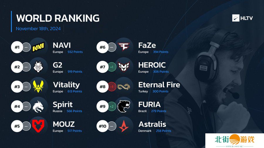 一起看看最新HLTV世界排名吧。