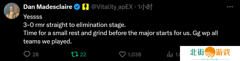 Vitality战队火力全开,以3-0的成绩顺利出线。在晋级上海Major之后,队内指挥apEX分享了自己的感受。