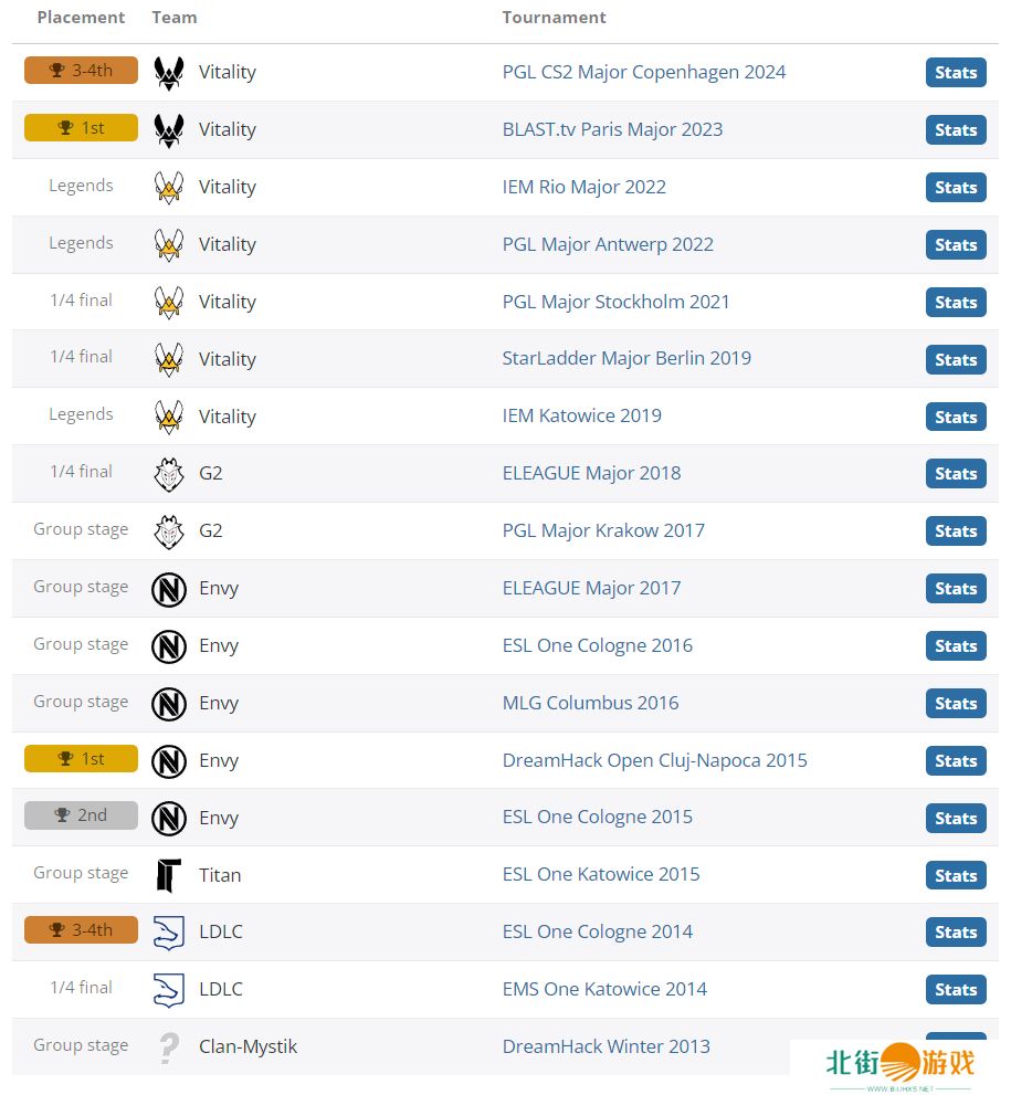 作为CS常青树,apEX三入Major决赛,并且拿到了两次冠军。同时值得一提的是,他和ZywOo组合在Major拿下的最差成绩为传奇组,分别是2022年的里约Major、2022年的安特卫普Major和2019年的柏林Major。