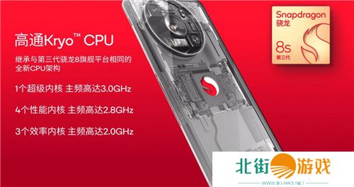 首先在基础的性能上,第三代骁龙8s移动平台搭载的仍然是高通Kryo CPU,继承与第三代骁龙8顶级旗舰平台相同的全新CPU架构,包含一个主频为3.0GHz的超级内核、4个主频高达2.8GHz的性能内核和3个主频为2.0GHz的效率内核, 对比第三代骁龙8在核心频率上自然有一定下降,但整体仍然是非常高的水平。