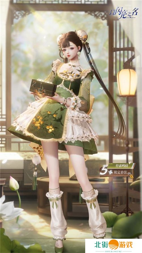 《以闪亮之名》此次的破晓守望新版本也带来了另外一套新中式风格的五星竹雀鸣枝套装。与龙**霸气和力量感相对,竹雀鸣枝则活灵活现地展现出了内敛可爱的东方小厨**小家碧玉。这套五星套装裙子采用Lolita裙的版型,面料的选择上则使用了带有传统国风花纹的提花缎面,裙子上通过大面积的枇杷刺绣的图案点缀,再一次展现出了《以闪亮之名》对传统中式和现代服装设计的审美造诣。