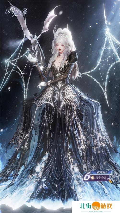 夜渊领主时装的胸口金属廓形采用龙爪元素,裙身也有与冰龙尾巴尖角同样的元素设计,水晶、钻石和复古的花纹以及蕾丝花边等元素的运用恰到好处,高腰线的设计无限地拉长了下半身比例,让身穿这套六星时装的玩家都能化身成权力与力量为一身的绝对女王。