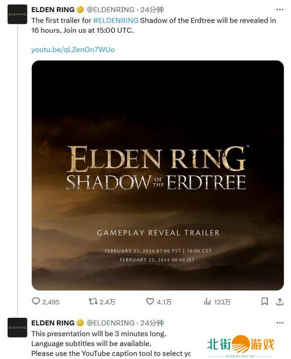 《艾尔登法环》DLC黄金树之影首个预告今日晚11点公开