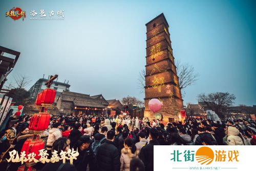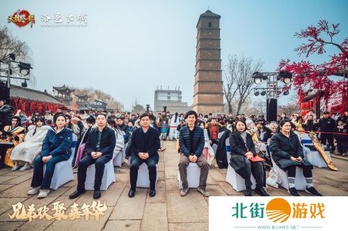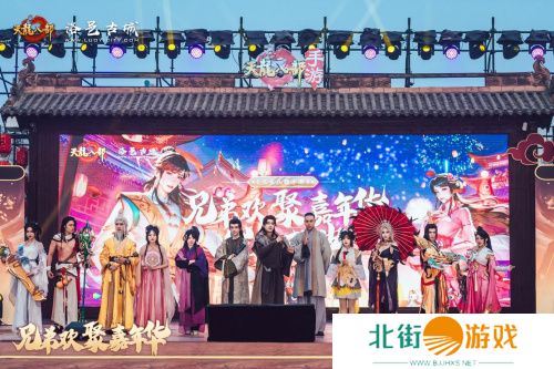 为期三天的《天龙八部手游》兄弟欢聚嘉年华 · 岁末盛典现场,在位于洛阳市老城区的洛邑古城。在总计2000平方米的活动场地内,设置有“江湖侠影”互动打卡区、“洛阳吉市”商户联动区以及位于显要位置的“天龙江湖”舞台演出区。