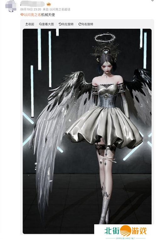 除了这些金属关节的设计,另外一个形态下镂空小腿和手臂的设计更是让玩家尖叫的存在,裙子上细节拉满的转动齿轮元素、裙摆的展开和仿佛振翅的抖动效果,都再一次让玩家惊艳于《以闪亮之名》在幻想方向上的创新和美术表达。从鸢尾迷局版本开始,《以闪亮之名》的鸢尾与权杖套装第一次将双形态的自由选择权给玩家之后,便一发不可收拾,正如此次的6星发条之心套装,玩家也可以自由选择镂空亦或机械关节的双形态。