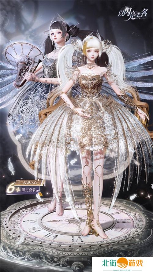 如果时间可以穿在身上,那一定就是发条之心的模样,这是一套一眼惊艳,用金属与钻石铸造的时光战袍。复古的色调和华丽的花纹,裙摆上的金属装饰与钻石和偏光水晶羽毛组成的翅膀相得益彰,打造出了如同童话般的梦幻效果。这些元素的完美融合,让这套6星套装呈现出独特而迷人的视觉效果。一经搭配上身,就能在人群中独树一帜,用时间的魔力,绽放你的璀璨之美。
