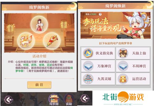 绮罗丛里一回眸,歌尽繁华几度秋。绮罗阁大幅焕新,限定外观齐返场!热门外观活跃兑换,通过每日活跃、天霞锦和活动置换,开启全民高颜值时代。版本更新后,御灵师可于新版绮罗阁中兑换武饰、坐骑、时装、足迹等各类珍品外观。绮罗阁中的外观商品将定期轮替上新,所有限定(不含联动)外观均有机会返场。