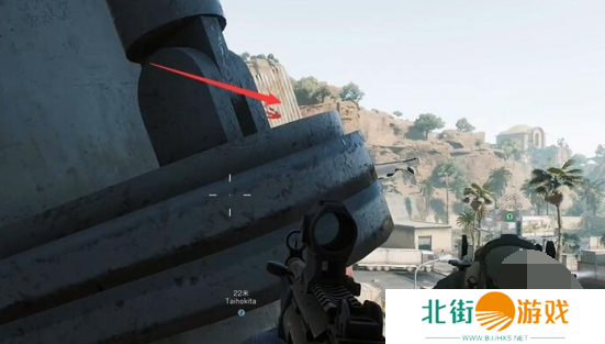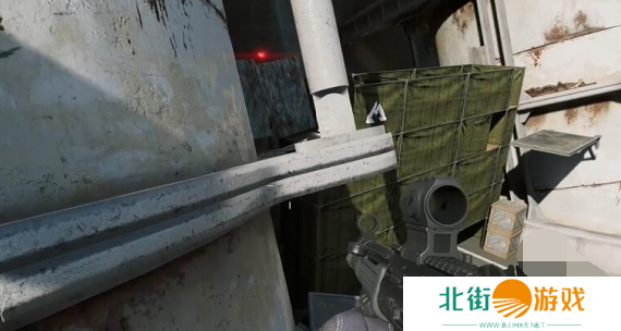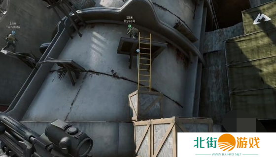 2、我们在工业撤离点是可以看到一个破损的建筑,我们在这从梯子往上面爬。