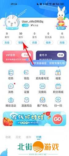 3、进入我的板块之后,可以在头像下方找到萌币点击进行领取;
