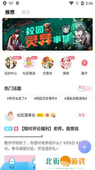 5、切换到漫画台,这里是有关该软件的热门话题的,还包括美图、社区精选等。