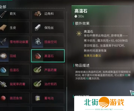 1、高温石:玩家们可以通过解锁模因烧20个炭制作的恒温石,恒温石和炭合成高温石,增加10点抗寒能力。
