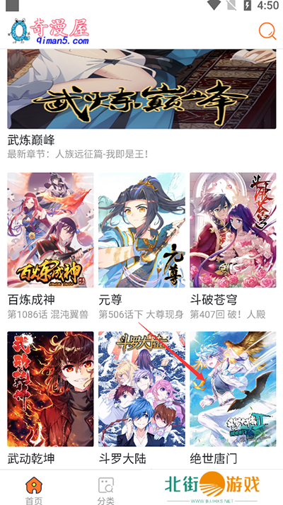 1、安装下载奇漫屋app,打开就可以看到海量漫画和排名榜,挑选您喜欢的漫画作品。