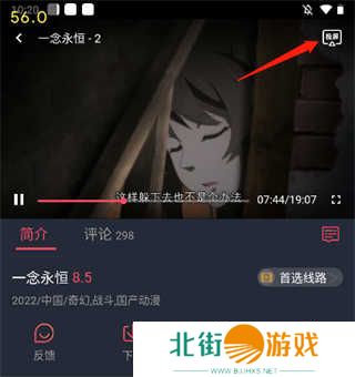 这个要在播放界面进行,点击动漫名称后面的播放源,如图所示,箭头指的地方;