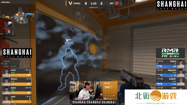下半场攻守互换,手枪局藏在正门烟雾弹的flameZ打了BB一个出其不意,队友顺势进入A包点,手枪局Vitality也稳稳拿下。强起失败的BB只得放出赛点。最终局,Vitality选择4-1分夹B区,在经过一波人数互换和架枪以后BB只留下s1ren一人,Spinx单点一颗宣告比赛结束,Vitality以13-3的**分带走对手,晋级2-0组。