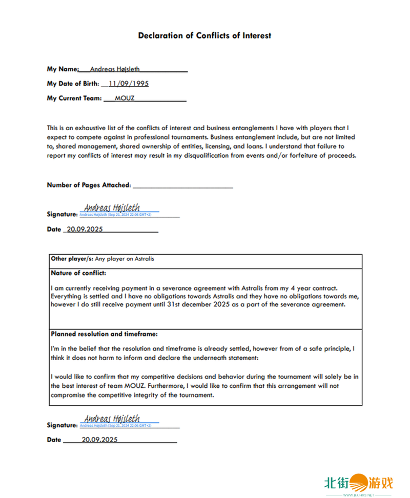 “我确认自己在比赛中的竞技决定和行为将完全符合MOUZ战队的最佳利益。此外我还想这一安排确认不会损害比赛的竞技完整性。”