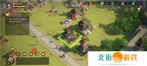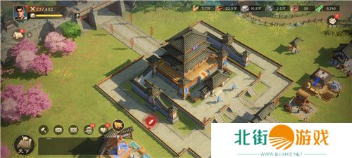 在主城中,玩家的主殿叫做霸府,从霸府延伸出的,是一条纵贯前后城门的街道。而这条街,充满着浓浓的市井气息,无论是街上巡逻的将军、还是坊间忙碌的百姓、亦或是城边初绽的桃花和成行的垂柳,都能让你感觉到一个活生生的三国世界。《偃武》用出现的每一个人、每一处景演绎着他们眼中的三国,让三国除了战场,还能有其他部分融入玩家的游戏,打造了独一份的三国代入感。