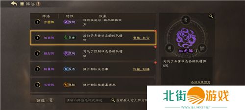 在选择了阵法后,玩家还可以根据需求进一步布阵。每种阵法都配备六种阵型,各个阵型间效果也并不相同,改变了阵型后,士兵和武将的位置也会发生变动。