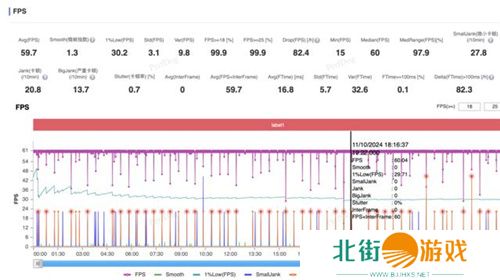 《绝区零》画面设定为60帧、最高,在光印广场跑图10分钟左右,平均帧数为59.7,表现很稳定,画面很流畅。并且平均功耗约4.5W,对比上代平台提升就很明显了。