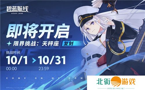 在10月1日00:00~10月31日23:59期间,复刻活动「限界挑战:天秤座」也将限时开放。指挥官等级达到80级后可参与挑战,本次「限界挑战:天秤座」中,累计完成窥探、审视及洞察难度可获得头像框「限界的挑战者Ⅴ」、星座聊天气泡「限界的挑战者·天秤座」、星座头像框「限界的挑战者·天秤座」。「限界挑战」不消耗任何资源,且战斗结果不计入个人信息统计,只为指挥官提供一个纯粹挑战自我的平台。