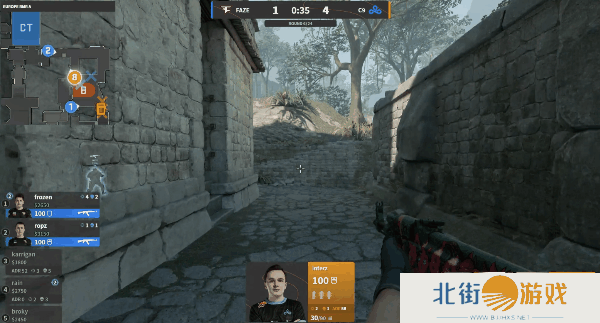 C9先做进攻方,手枪局直接提速中路将FaZe平推,次回合FaZe选择纯e。