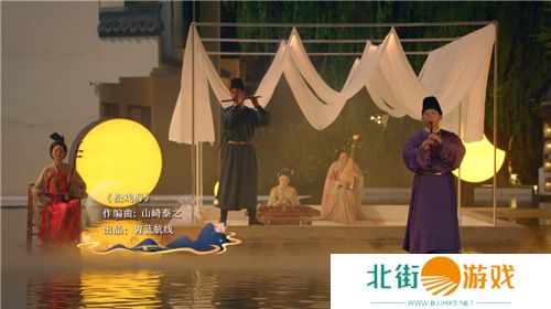 晚会的另一大亮点是二十四伎乐带来的bilibili游戏国风组曲。在乌镇的湖中小亭上,首先上演的是《FGO》《八方异闻卷》组曲(节选)。艺术家们使用传统乐器重新演绎了这些人气手游中的经典配乐,将传统与现代巧妙结合,既保留了原作的激情与动感,又赋予了这些旋律新的生命力。紧随其后的《物华弥新》的游戏主界面曲《浮生偷闲》和《碧蓝航线》的国乐版《松戏梅》,通过优美的旋律搭配动画CG,展示了传统文化在现代游戏文化中的独特魅力。