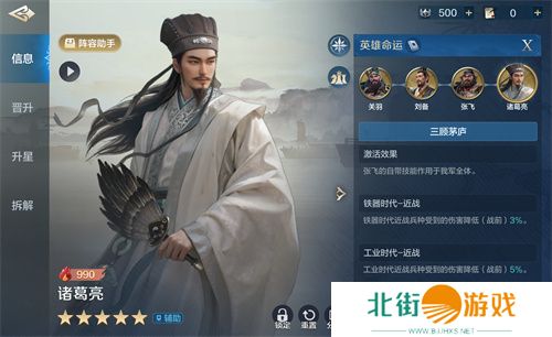 虽然商业化克制,新出的英雄较少,但并不意味着玩出的花样少。第二纪元推出了两位三国新英雄诸葛亮、张飞,配合第一纪元已经推出的关羽、刘备,玩家能够集齐三顾茅庐典故中全部四位英雄。其中任意三位英雄在游戏阵容搭配时能够形成命运,获得额外的效果加成。诸葛亮热度高达990,并且自带技能“千古人龙”也有非常强的控制、减伤和输出效果。