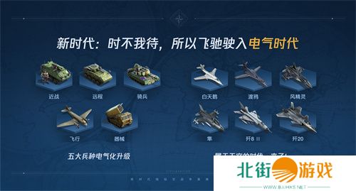 从第一纪元到第二纪元,时代也会从工业时代推进至电气时代。五大兵种类型将会迎来全面升级。装甲步兵车、重装自行火炮、犀牛坦克、多管火箭炮等大家耳熟能详的现代装备,都能被玩家玩到。飞行兵种将迎来史诗级加强。玩家期待已经的国产第五代隐形战机歼20、功勋之翼歼8II都将登上天空战场。其他飞行单位也都有自己的现实原型,美国的F16战斗机,俄罗斯的图-160轰炸机,等等,玩家可以尽情在世界启元中打一场现代空战。