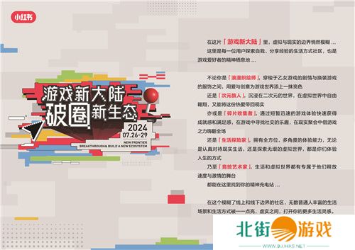 7月26日,小红书将举办「游戏行业闭门私享会」,围绕人群破圈首次发布「游戏行业解决方案」,小红书希望与品牌一起“找到人,理解人”,通过更具针对性的游戏破圈解决方案:“科学洞察找到潜在人群”、“好内容x好流量进行内容破圈”、“效果收口,流量验证 ”,帮助好游戏产品找到目标人群和热点机会,并通过商业产品在不同游戏周期的应用及定制化的游戏行业IP新玩法,助力更多游戏品牌在小红书乘势而飞!