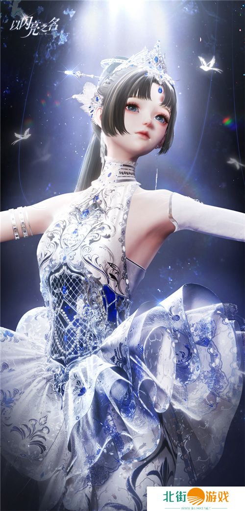 当然,这套瓷心傀儡六星套装最突破的,还是在服装的“用料”层面。在材质层面上的使用,可以说达到了业界的顶尖水平,高达148种材质的使用,让这套六星时装从发丝到特效的表现,都细腻无比。不仅如此,这套时装在设计上也加入了大量的雕花纹路和金属花纹,而且是直接叠加在半透布料上。相比于其他游戏,对于单层透光的材质都还在尝试使用贴图实现模拟效果,在《以闪亮之名》游戏中却使用了多达10层的半透明材质。显然这样呈现出的套装效果最为出色,光线穿透不同半透材质之后的柔光效果夹杂着每一层布料上的花纹,才是这套瓷心傀儡六星套装称得上开启技术3.0时代的原因。