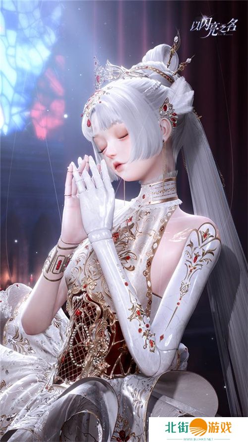 如果说从细线和大手对角色的操控上,一眼就能看明白结合了泉州提线木偶戏非遗的设计,德化白瓷非遗元素的融入则更多体现在套装的设计本身。德化白瓷以其温润如玉、洁白无瑕的质感而闻名,其纯净的白色给人一种优雅、宁静和超凡脱俗的感觉,仿佛能够唤起人们内心深处对于美好和纯洁的向往。拉近来看角色左侧的手臂和腿部,都以洁白无瑕、折射着光芒的陶瓷质感,成为了最光彩夺目的存在,同时也增强了整体套装的神秘感。