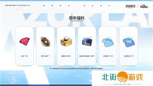 为庆祝《碧蓝航线》七周年,游戏为指挥官准备了七周年纪念礼物,钻石、喵箱 SSR 型等丰厚奖励将于5月30日全服发放,「七周年纪念签到」七周年直播奖励已在5月21日维护后发放,内含心智魔方和大量物资等道具,还未领取奖励的指挥官可以前往港区邮箱处接收。