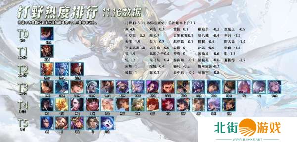 这周没有打野位置的相关调整,也没有新皮肤,所以大部分的英雄出场率是没有变化的。有变化的大多都是因为玩家们感知到了这个英雄在这个版本较强或者是较弱,所以更多的玩家加入或者是离开。