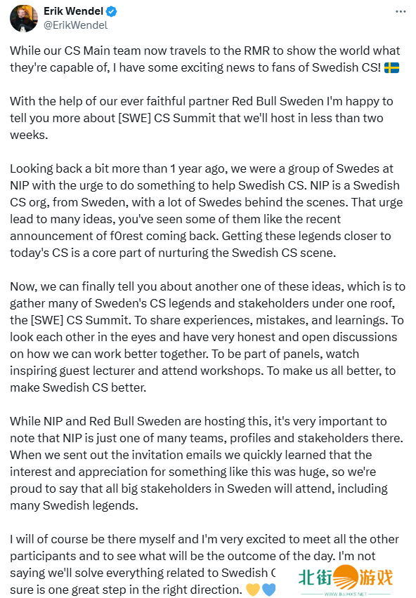 “当我们的CS主队现在前往上海Major 欧洲RMR向世界展示他们的能力时,我也有一些令人兴奋的消息要告诉瑞典CS的粉丝们!