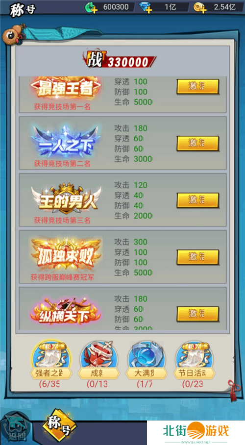 另外,角色称号也是非常的拉风,而且很多还紧跟各种网络流行语、经典电影台词,比如“我要打6个”、“我要打9个”、“最强王者”、“王的男人”等等,是不是听上去就想要,关键这些称号还不只是耍酷,同样带有很强的属性加成,可以说是又帅又实用。