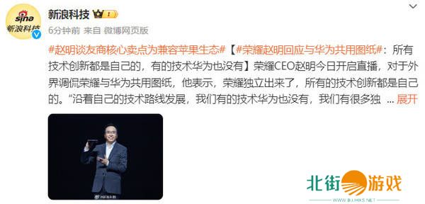 在直播中,赵明还提及了华为消费者业务CEO余承东关于“抄袭无未来”的言论,对此表示赞同。他认为,在借鉴他人经验的同时,必须注重创新。赵明进一步指出,技术突破不应成为独占资源,而应鼓励行业内的跟随与创新,荣耀对此持开放态度。