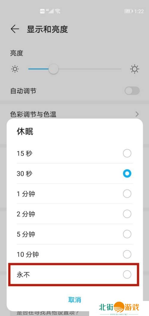 3、这样玩家的手机休眠只要玩家不手动关闭,就不会自动关闭。