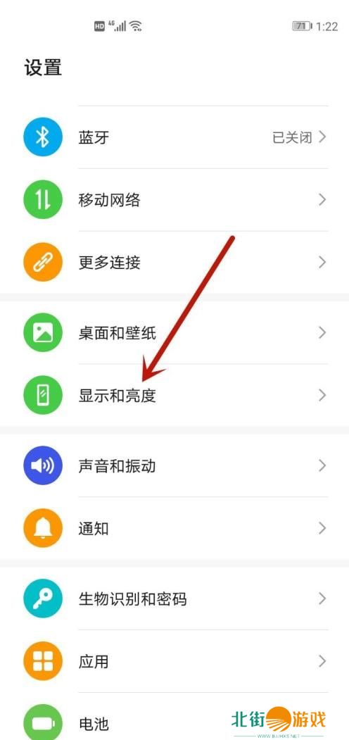 1、首先玩家需要开启手机设置,点击其中的【显示和亮度】。