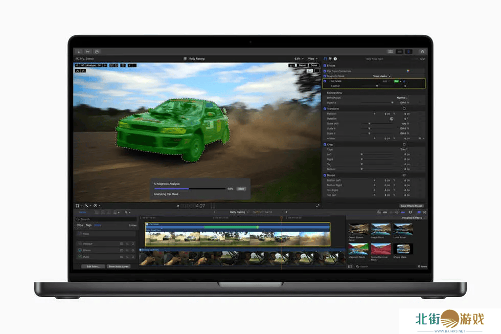 新版Final Cut Pro 11深度融合了苹果M系列芯片技术,推出了磁性遮罩这一创新功能。该功能能够轻松实现人物和物体的精准抠图,摆脱了对绿幕的依赖,极大地提升了视频编辑的灵活性和创意空间。同时,结合色彩校正和视频效果,编辑人员可以更加精细地掌控和美化每一个编辑项目。