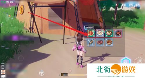 1、我们在游戏中,在界面下方是我们的血条,血条的右边就是食物快捷使用键了。