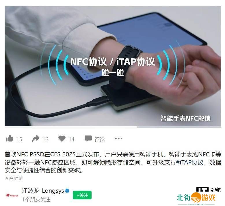 在CES 2025展会上,深圳市江波龙电子股份有限公司推出了一项创新产品——首款集成NFC技术的移动固态硬盘。这款产品的亮相,无疑为数据存储领域带来了全新的安全体验。