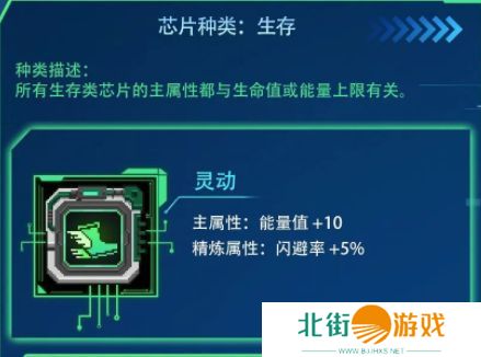 绿色的芯片是生存类的芯片,主属性增加10点能量值。