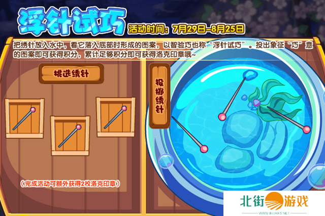 1、玩家需要将绣花针放入水中,看到绣花针落入水中形成的一个图案。