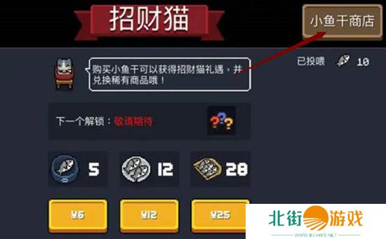 3、点击招财猫弹出的页面,右上角就是小鱼干商店。