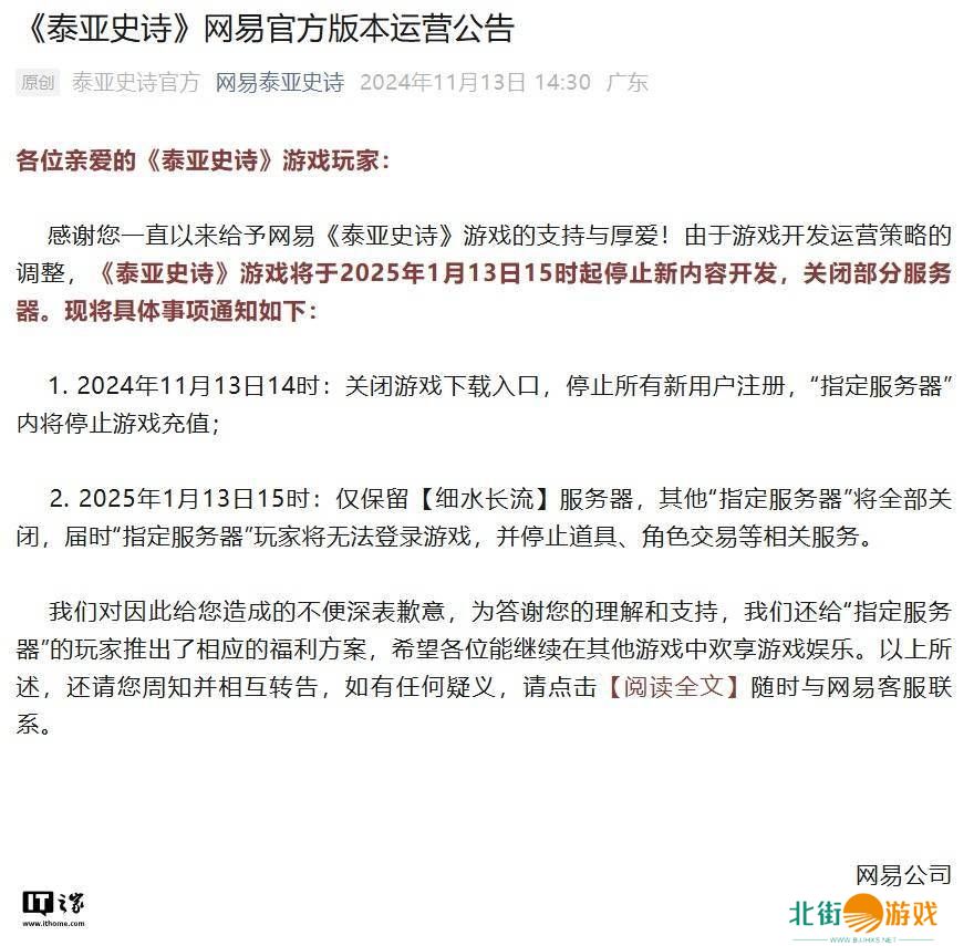根据公告细节,2024年11月13日14时将是这些游戏关闭下载入口及停止新用户注册的时刻,同时指定服务器内也将停止游戏充值服务。这一举措旨在为即将到来的服务器关闭做准备。