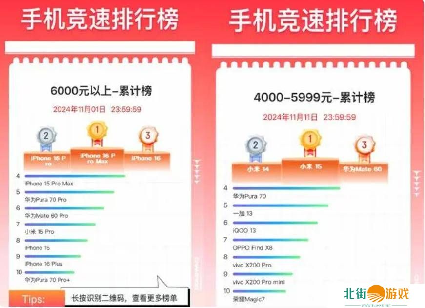 在高端手机市场方面,苹果依旧占据主导地位。然而,小米也展现出了不俗的竞争力。特别是在4000至5999元价格区间内,小米手机表现突出,成功拿下前三名的位置。而在6000元以上档位,小米15 Pro也跻身榜单前七,显示出小米在高端市场的强劲实力。