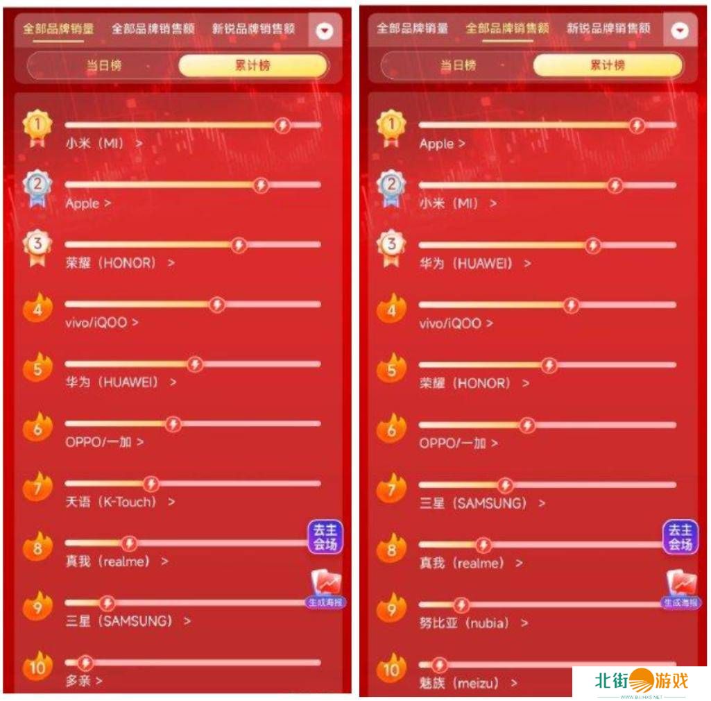 其他手机品牌如荣耀、华为、VIVO和OPPO等,在销量和销售额上各有表现,但整体而言,均未能超越苹果和小米这两大巨头。