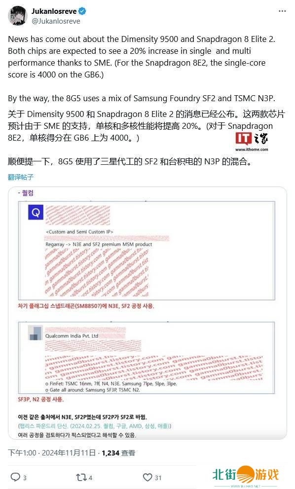 在制造工艺方面,第二代骁龙 8 至尊版芯片有望采用台积电最新的 3nm N3P 工艺。同时,也有消息称,在三星的良率提升至可接受水平后,这款芯片可能还会混合使用更为先进的 SF2 节点(也称为 2nm GAA)工艺。这一消息无疑为科技爱好者们带来了更多的期待和想象空间。
