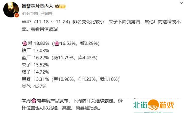 近期,中国智能手机市场的最新销量数据被曝光,该数据涵盖了2024年11月18日至11月24日,即第47周的销售情况。