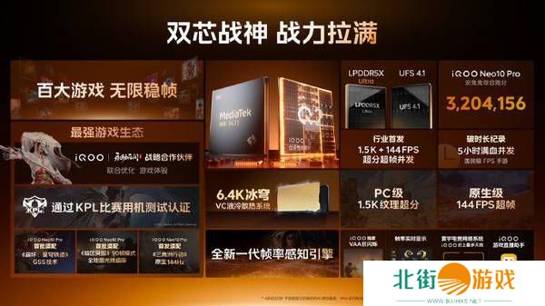 与天玑9400相得益彰的是读写速度高达9600Mbps的LPDDR5X Ultra内存,以及应用安装速度提升50%的UFS 4.1闪存,这三者共同组成了iQOO Neo10 Pro的“旗舰铁三角”,为用户带来极致流畅的使用体验。