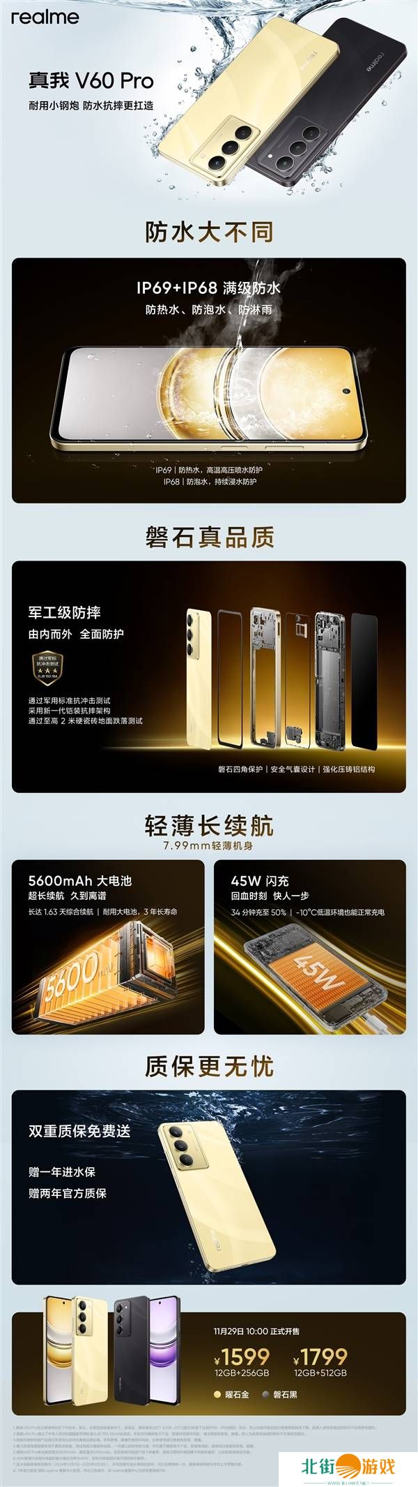 为了回馈首批购买真我V60 Pro的用户,真我品牌还特别推出了双重质保服务。用户在购买后,将享受到一年防水保障与两年质保服务。在质保有效期内,若手机因意外进水导致损坏,用户将有权享受一次免费维修服务。